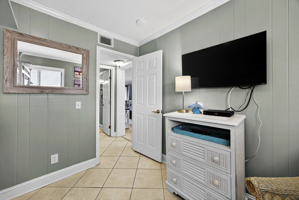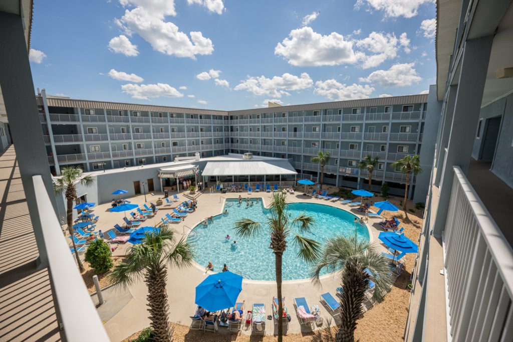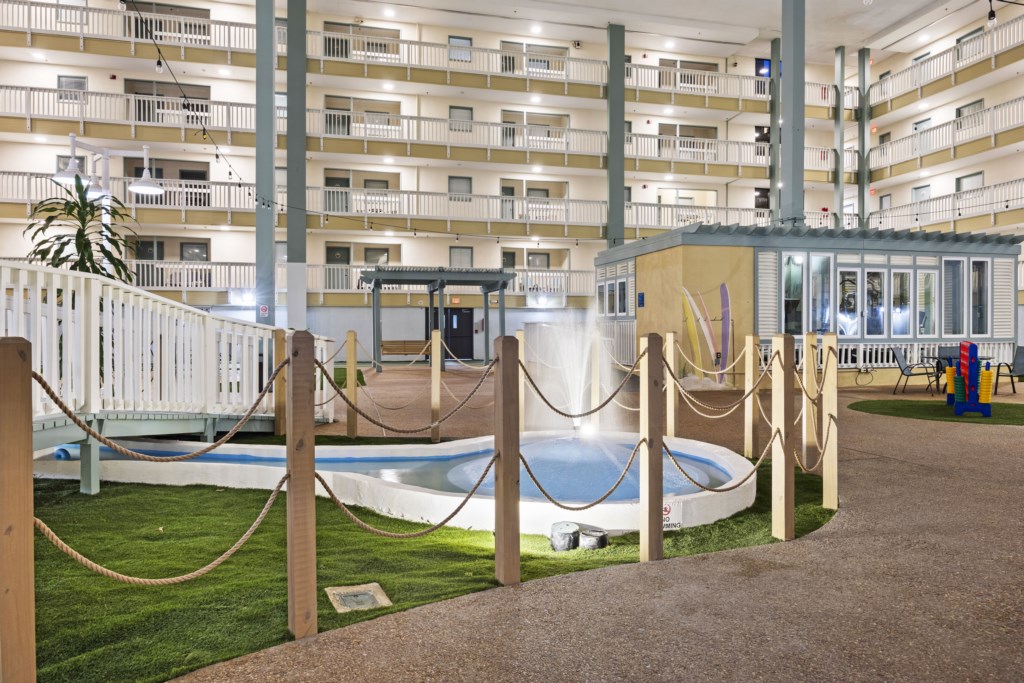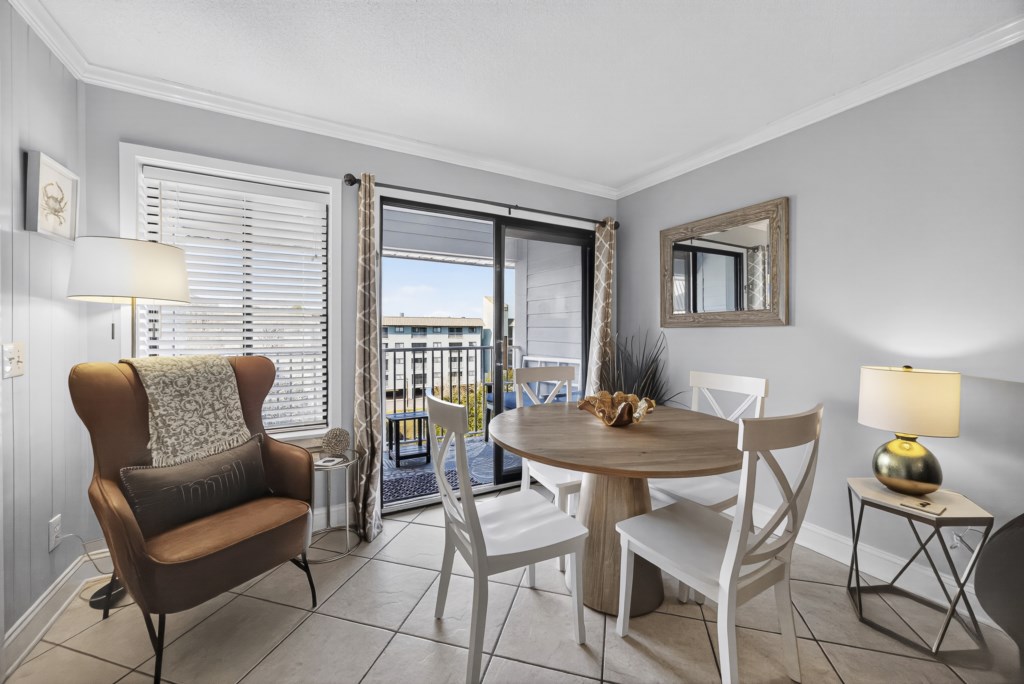 The resort itself is also packed with amenities: Three inviting pools. including an outdoor heated pool in Building #1 as well as a beautiful indoor recreation facility in Building #3 which includes a heated pool, kiddie pool and hot tub, walking track, a well-equipped gym, sauna & steam room, and even a small arcade! You can also enjoy delicious meals at the on-site deli or sip refreshing drinks at the poolside tiki bar and oceanfront Cabana. For those who love staying active, there are six lighted tennis and pickleball courts, a badminton court, as well as an oceanfront volleyball court. After a day of fun in the sun, you can grill up a feast at the designated area. A golf cart shuttle also runs April-September from the resort to the beach! If you have kids, they will love the 10 minute walk across the boardwalk with all the marine life!