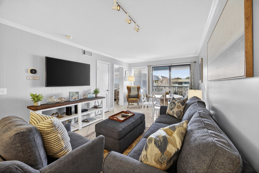 Welcome to COCO CABANA, a stunning and freshly designed Vacation Ready Services condo located at Hilton Head Resort! Nestled on the 4th floor of Building #1, this charming two bed & two bath island getaway is the perfect retreat for families and friends alike. As you step inside, you'll be welcomed by a fully equipped kitchen featuring modern appliances and all the cookware you might need to whip up some delicious meals. The open-concept layout seamlessly connects the kitchen to the inviting living room, where you can relax on a brand new couch (this can also be converted into a queen sofa bed that includes a gel foam mattress) while enjoying your favorite TV shows on the Smart TV.
