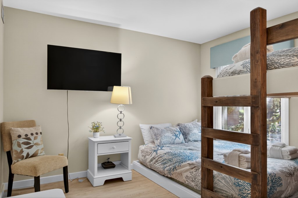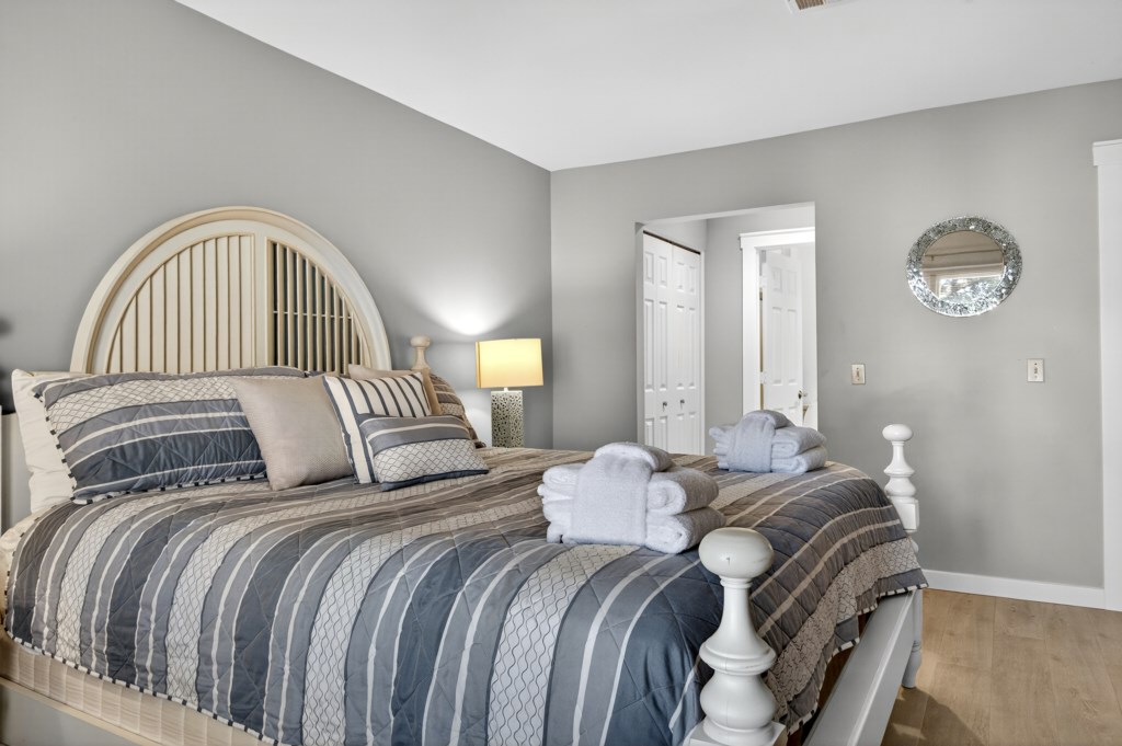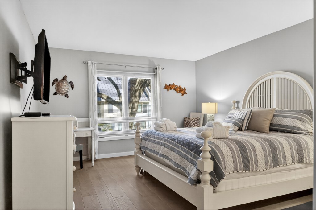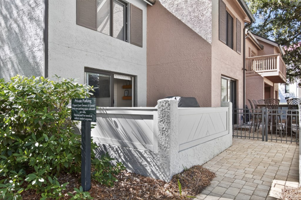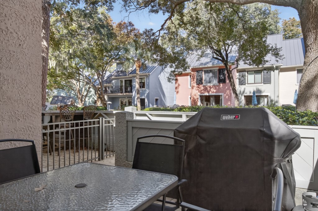This 2-story Sea Pines condo places you only steps away from Harbour Town and a short bike ride to the Sea Pines Beach Club! On the first floor, find the living room, kitchen, and dining area. The living room features comfortable seating as well as a large flat screen TV and classic board games for your entertainment. Through the sliding glass doors, step out to your private patio and enjoy summer nights under the stars while cooking on the grill! Directly down the hallway sits the fully equipped, classic-style kitchen that is more than ready to take on the heat; preparing meals here is simple and easy. Find a full-size washer and dryer in here to take care of all laundry needs in the house. The formal dining table has enough seating for six, and there are also plenty of dining options within walking distance! Upstairs, the two bedrooms are opposite each other to offer great separation and privacy. The master bedroom has a king-sized bed as well as a flat screen TV and two walk-in closets for plenty of storage. The master bathroom has a vanity and shower/tub. Down the hall, find the second bedroom with a queen-sized bed. This bedroom has access to a hall bathroom right outside. The Harbour Town Yacht Basin, Lighthouse, and more are all within walking distance and will be sure to make for a memorable trip. Spend your time at one of the most iconic places on Hilton Head for your next getaway!